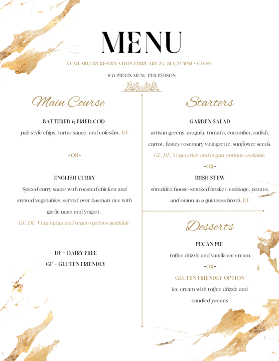 Weekend Dinner Menu Feb 23, 24 & 25
