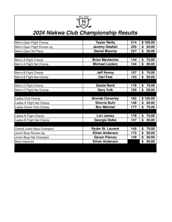 Club Championships Results