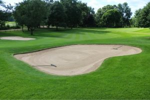 The other question that comes up is exactly where in the trap are the rakes to be left? Every trap has one or more points of entry. Rakes should be distributed at those points of entry. The handle of the rake should point to the edge of the bunker, with the head of the rake, teeth up, toward the middle of the trap. When a player enters the trap, he or she picks up the handle of the rake and walks toward his or her ball, laying the rake down before addressing the ball. The player then rakes the trap as he or she exits and leaves the rake in the same position, handle pointed to the edge. Curses uttered after mishitting a sand shot (or two) should be kept under one’s breath while raking the trap.
